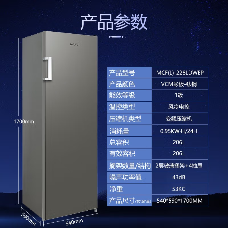 美菱立式冷冻柜 商用单门冰箱 冷藏冷冻随意转换