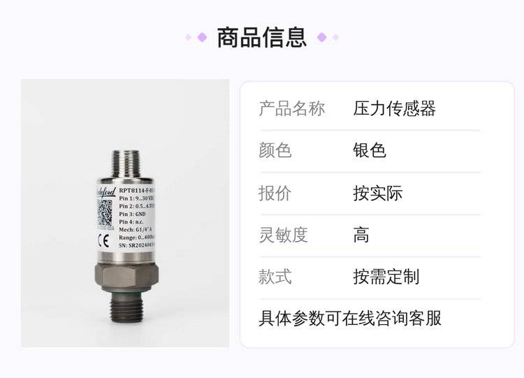 银色压力传感器 RPT811M 高灵敏度 工业自动化汽车制造适用