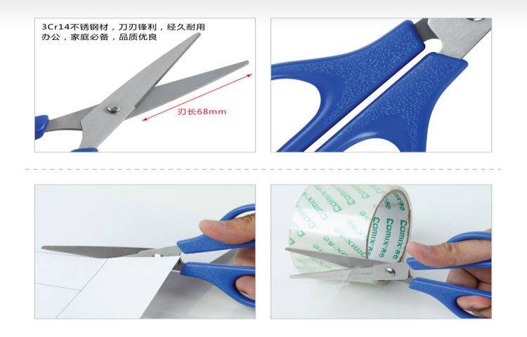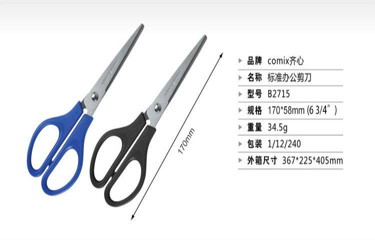 齐心B2715蓝 中号标准办公剪刀170mm商用 商品批发