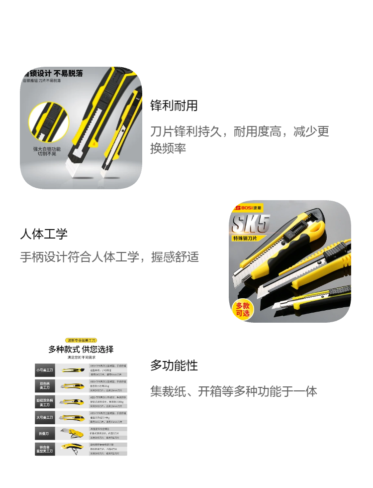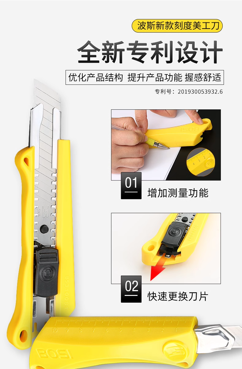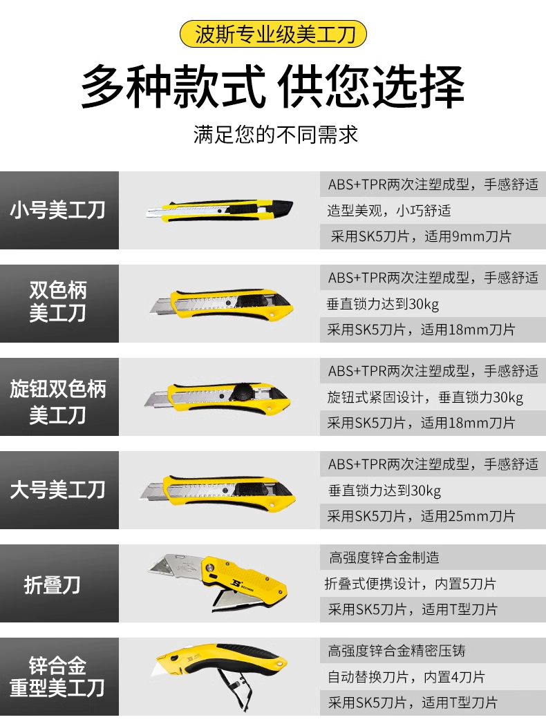 波斯美工刀(18mm)双色柄 BS310061推杆式自动锁定壁纸刀