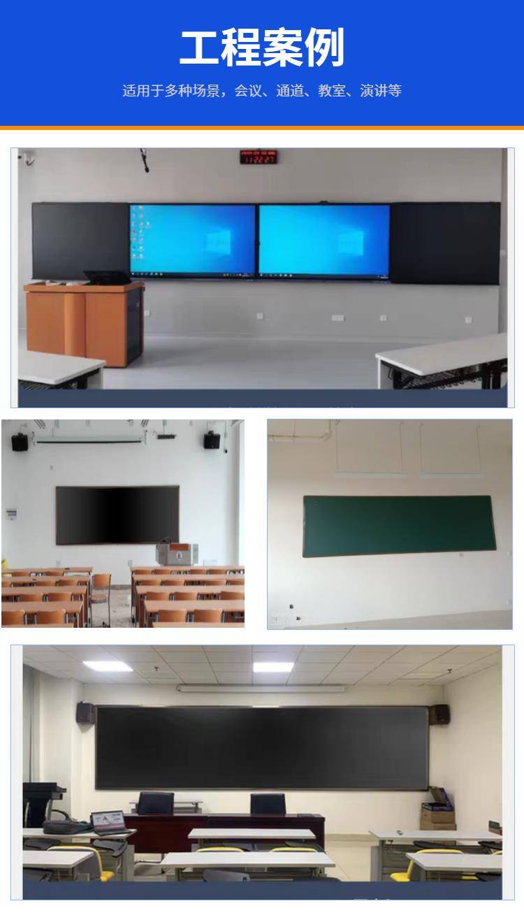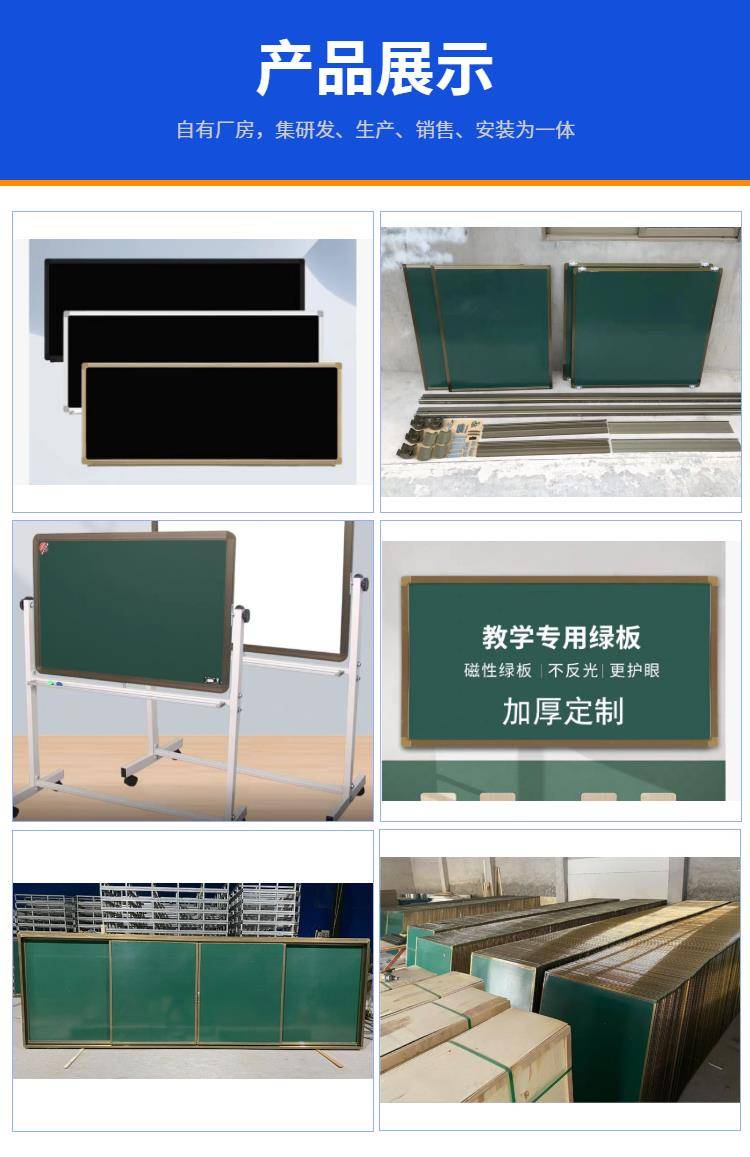 推拉式多媒体教学黑板厂家 挂墙式学校教室磁性无尘黑绿板定制