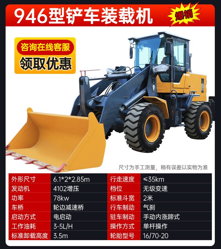 华科928装载机小型液压柴油铲车工程养殖四驱农用铲运机