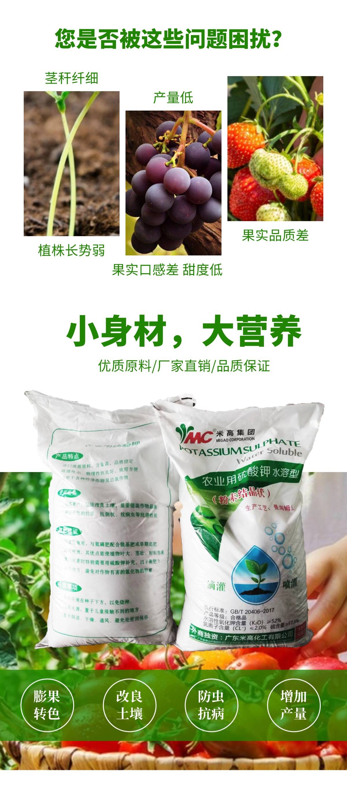 米高 水溶肥 农业硫酸钾 钾肥 叶面肥 瓜果蔬菜农用通用型
