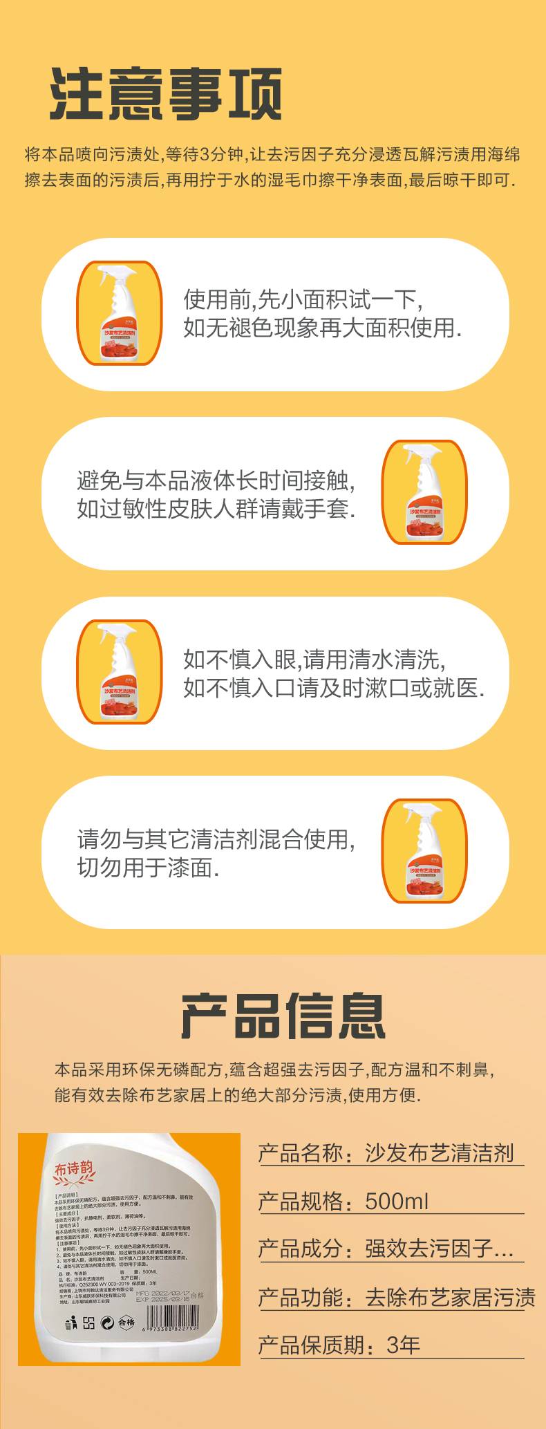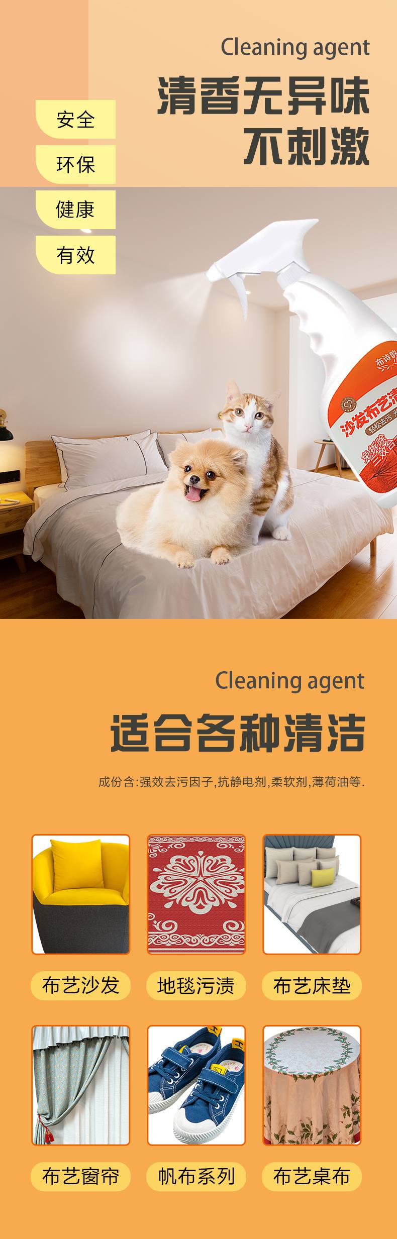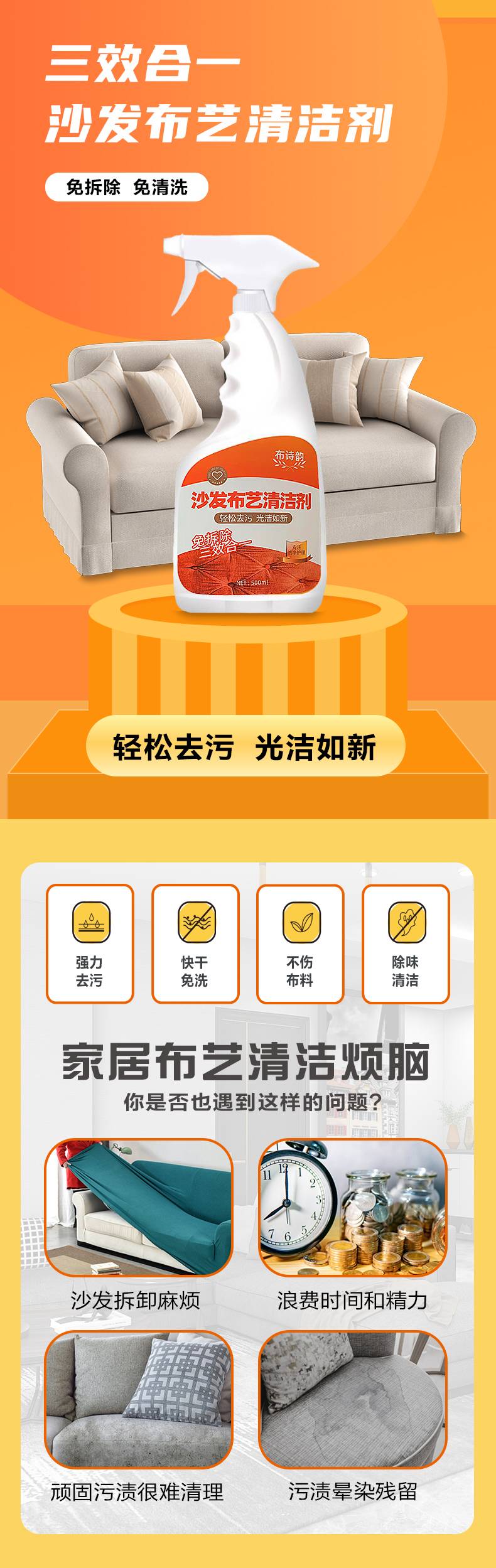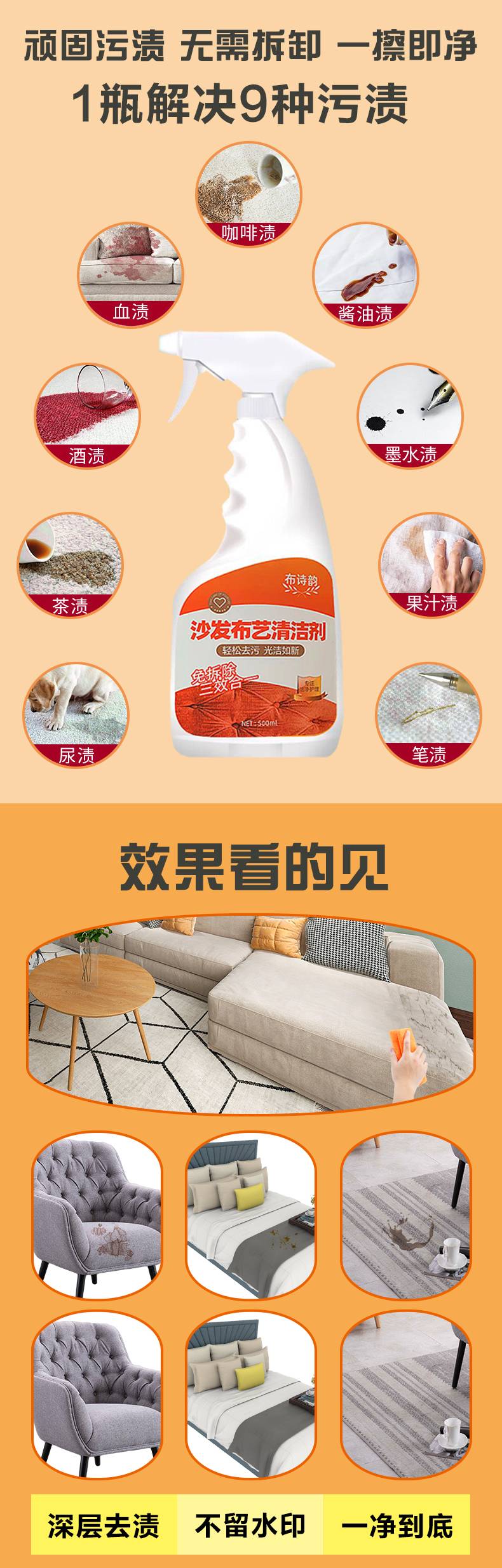 布诗韵布艺沙发清洁剂免水洗地毯清洗窗帘墙壁布床垫专用干洗去污