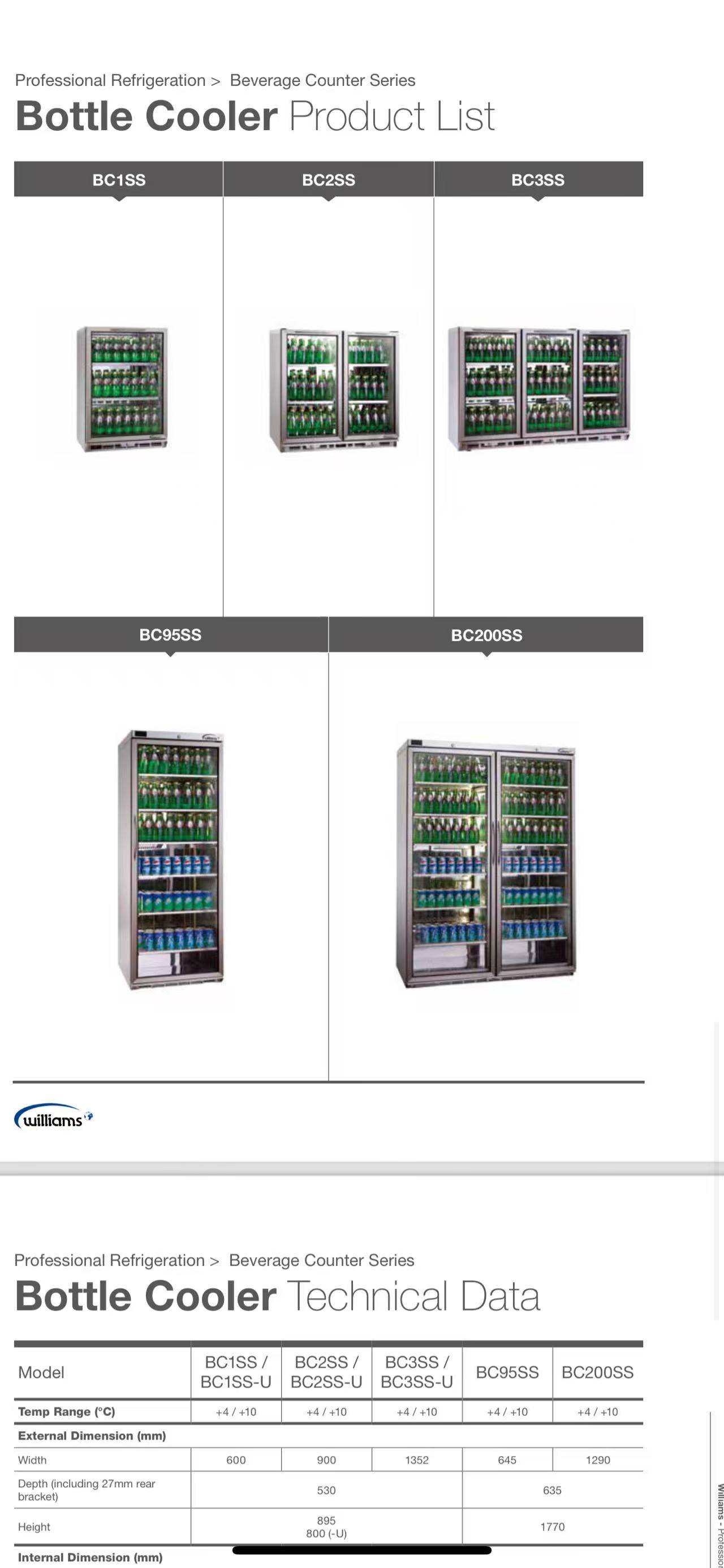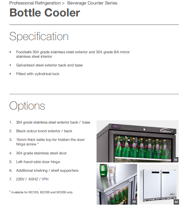 Williams威廉士 威廉姆斯商用酒吧饮料柜冷藏柜BC1U