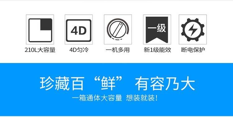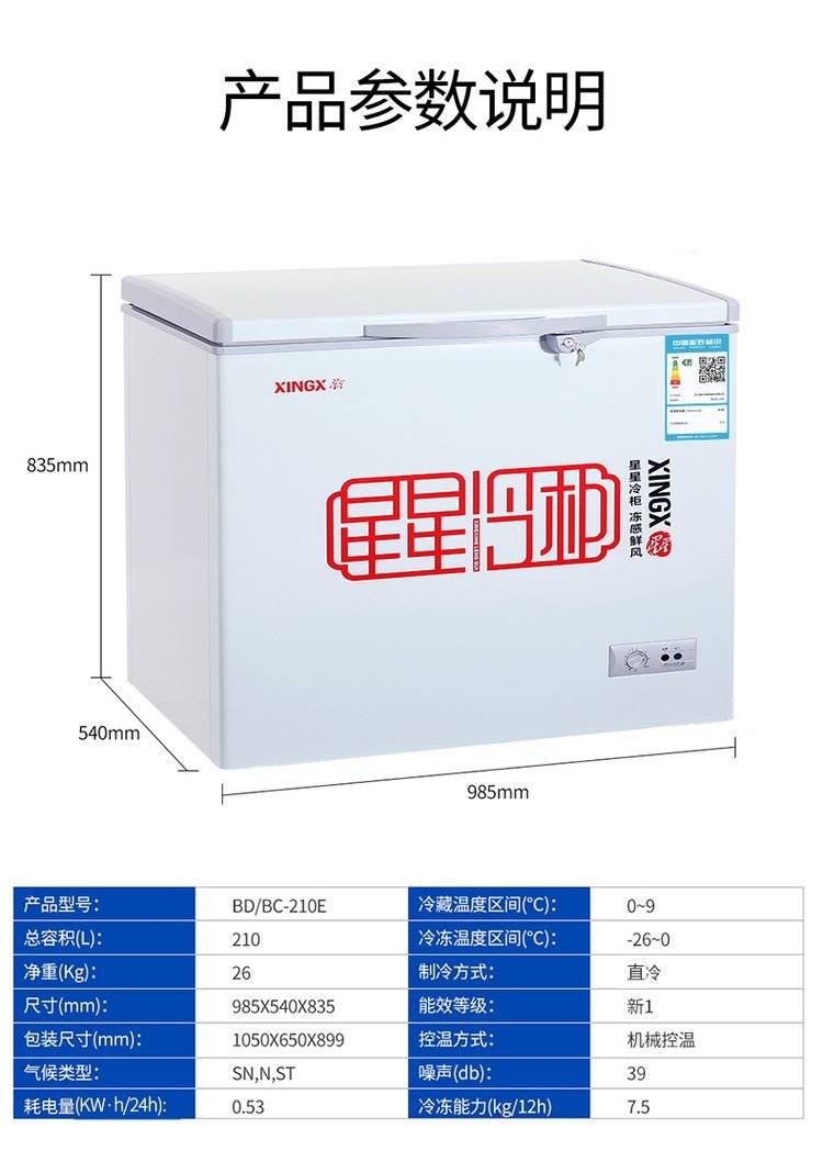 XINGX星星BDBC210E小冰柜冷柜家用商用小型冰箱大容量冷藏冷冻柜