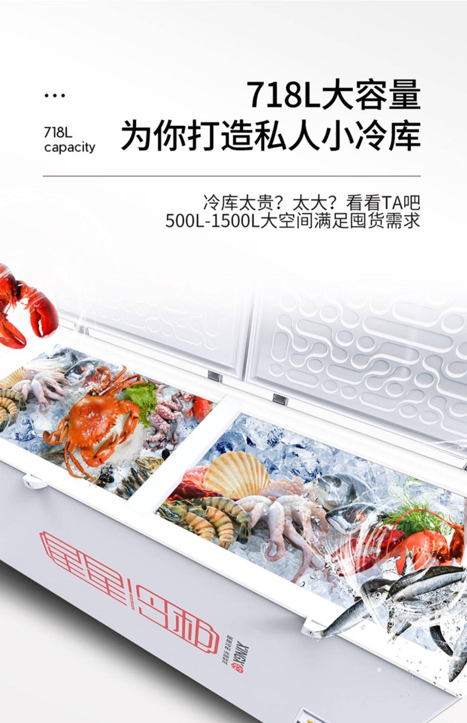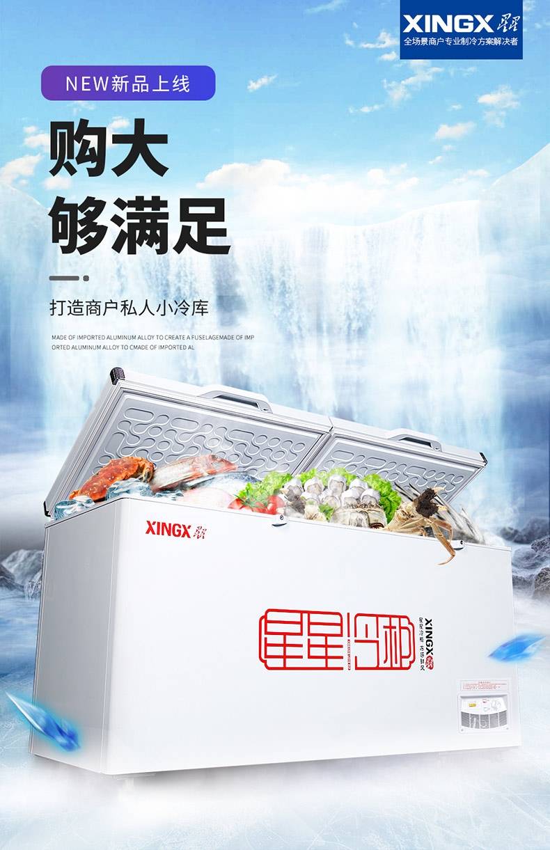 星星冰柜518升商用大容量冷藏冷冻柜卧式温速冻718升单温冷柜