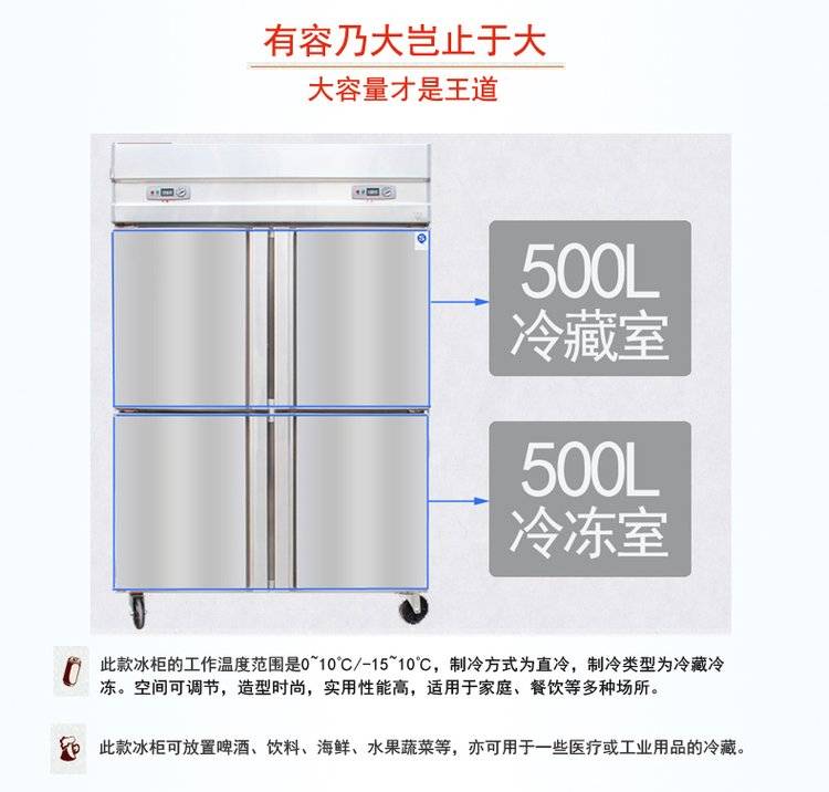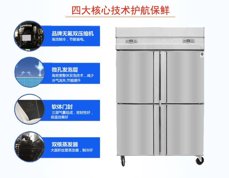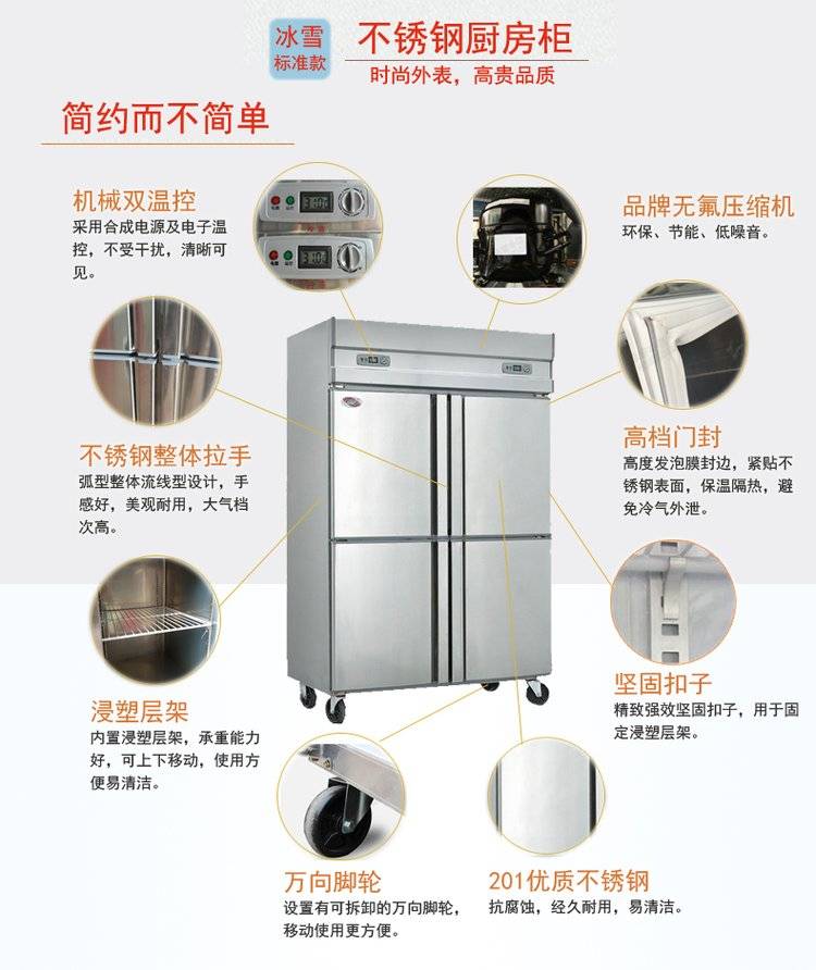 冰雪绿源厨房四门冰箱 立式不锈钢冷藏冷冻柜 全国联保