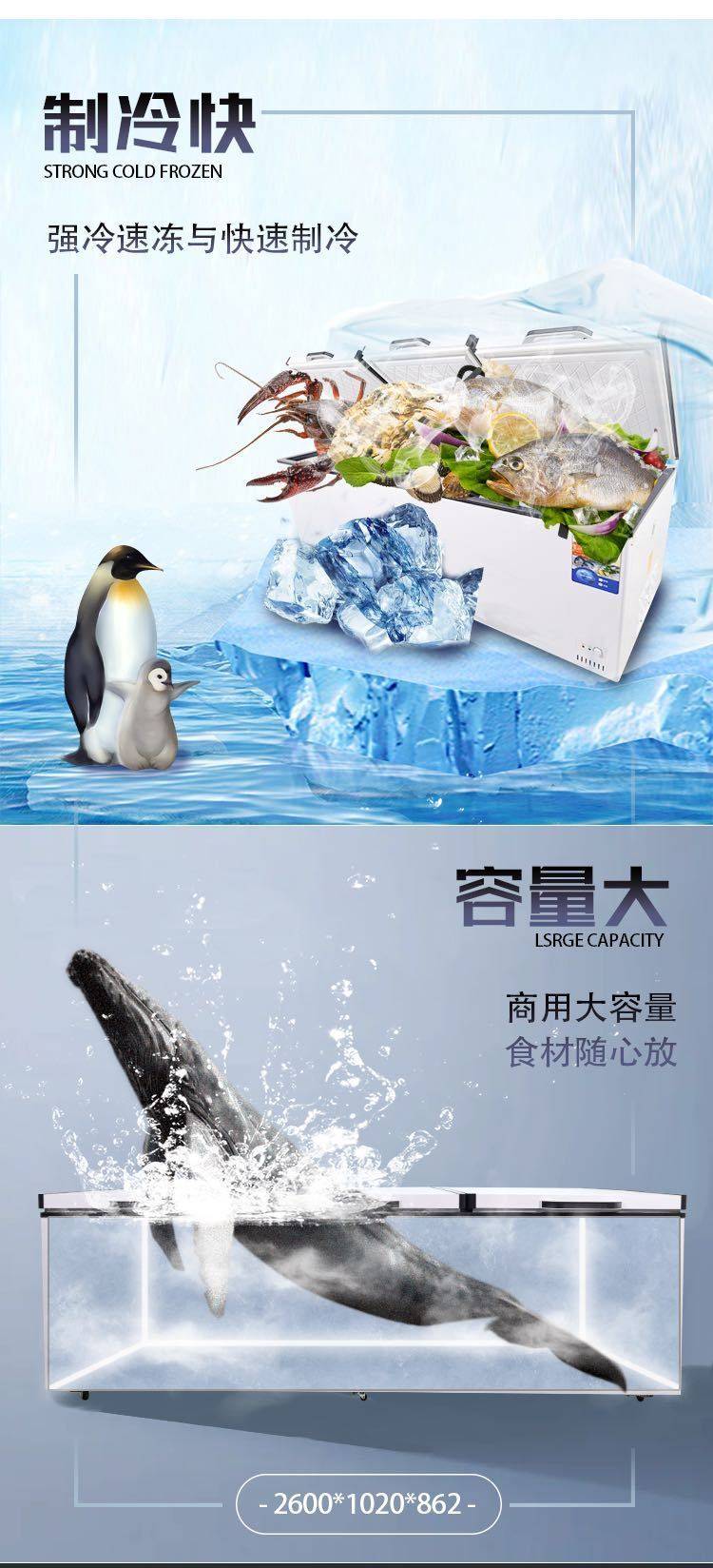 卧式冰柜商用大容量冷藏冷冻柜双温保鲜冷冻两用大型超市冰箱冷柜