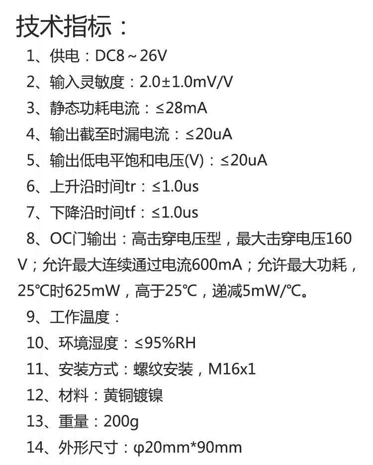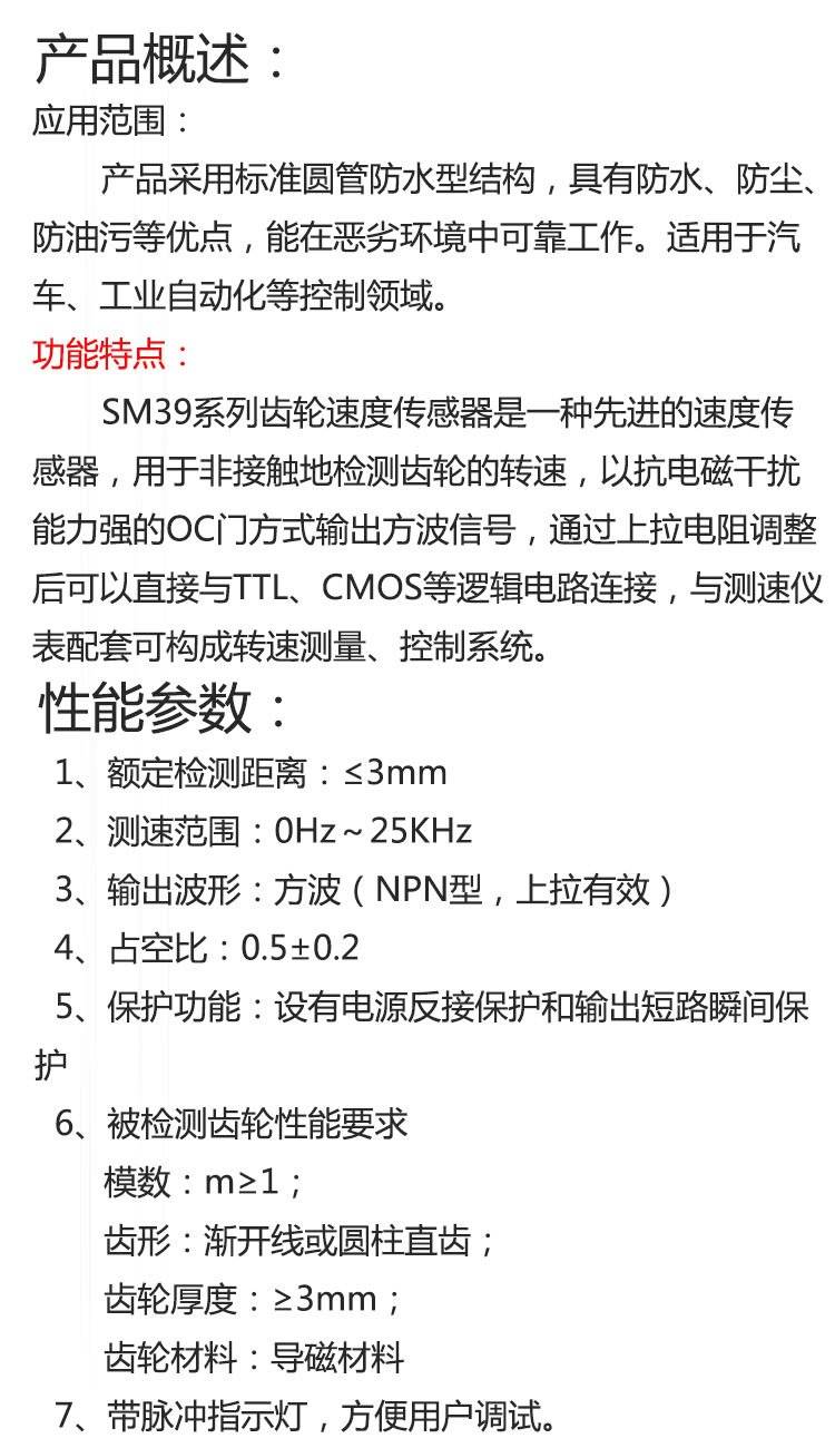 速度传感器(转速) 标准圆管防水型结构 适用于汽车、工业自动化等