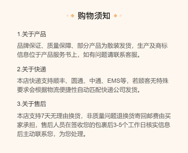 特别提示:商品详情页中(含主图)以文字或者图片形式标注的抢购价等价格可能是在特定活动时段下的价格,商品的具体价格以订单结算页价格为准或言是您与商家联系后协商达成的实际成交价格为准;如您发现活动商品价格或活动信息有异常,建议购买前先咨询商家。