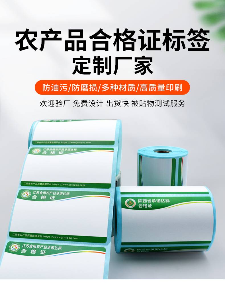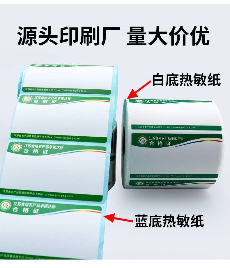 农产品质量安全合格证定制标签纸设计印刷 三防热敏不干胶打印纸