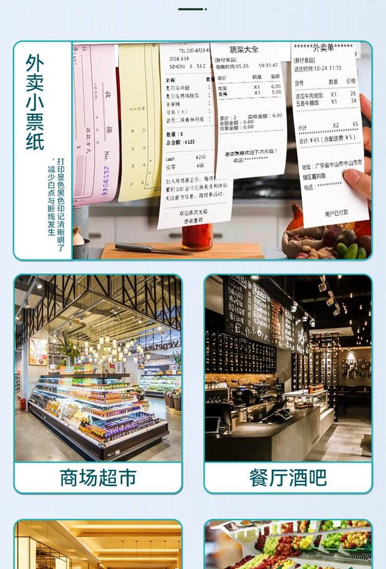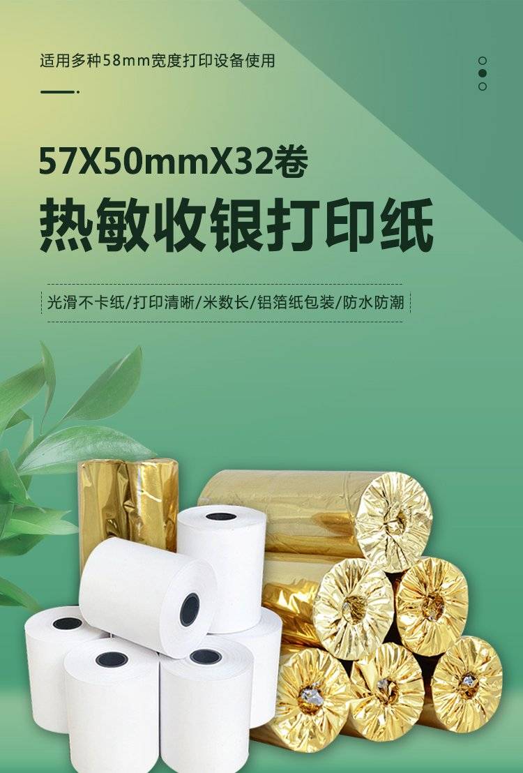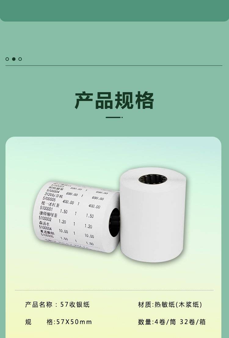 57X50MM热敏打印纸 品质好纸 打印清晰 商超 餐厅 酒吧 外卖 零售
