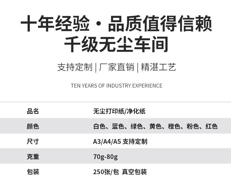 净化无尘打印纸 印刷厂无尘纸原纸大尺寸 彩色复印纸多规格可选