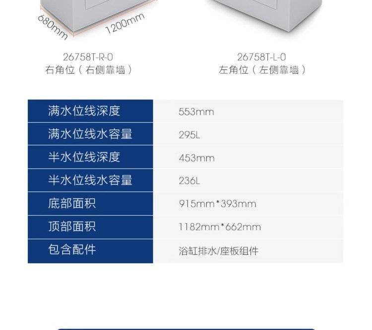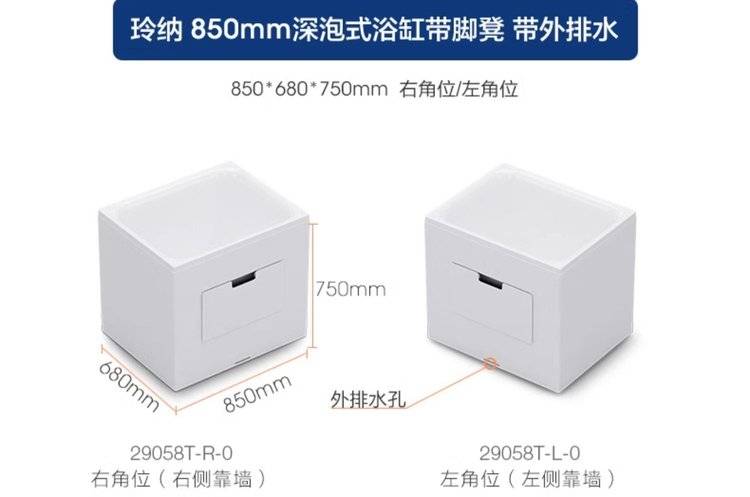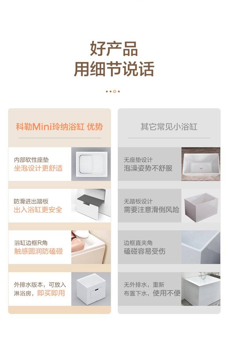 科勒品牌靠墙无裙浴缸 小户型卫生间压克力材质款