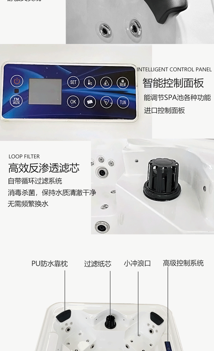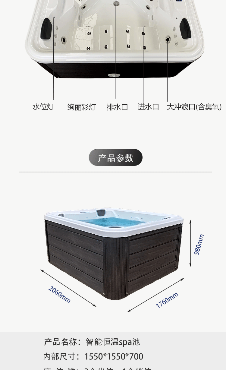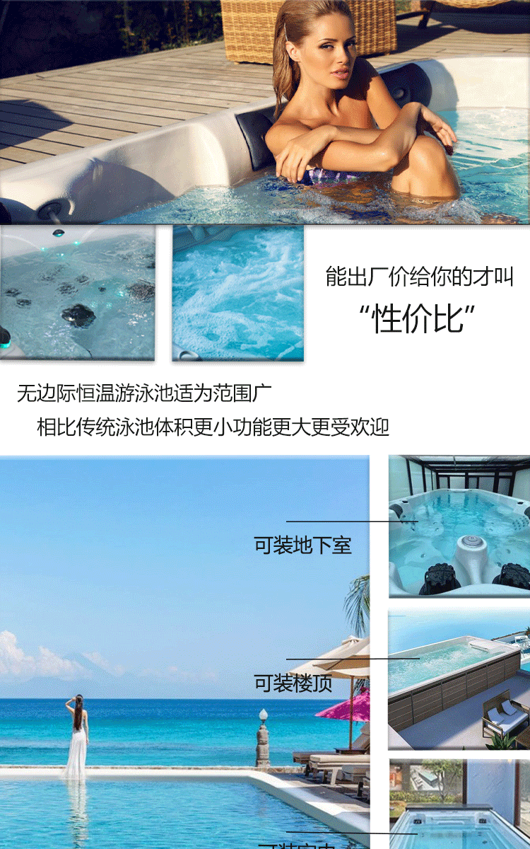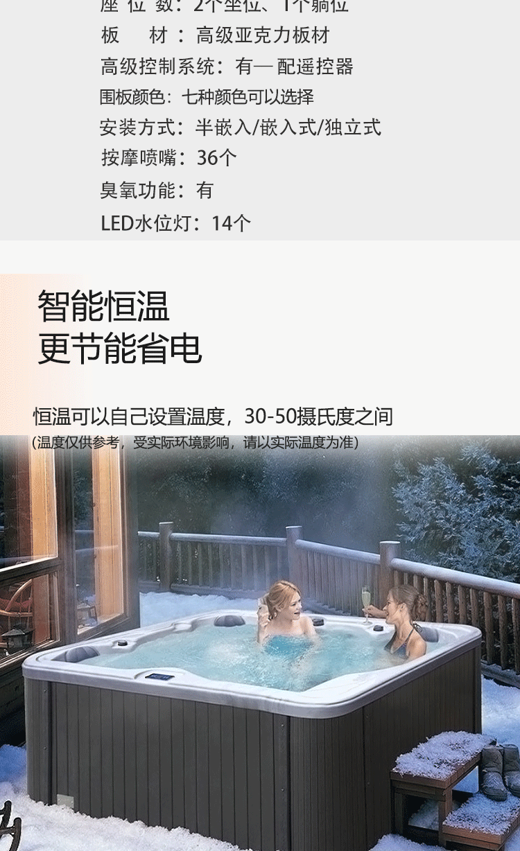 户外多功能冲浪式按摩浴缸自家庭院多人智能恒温加热水疗温泉泳池