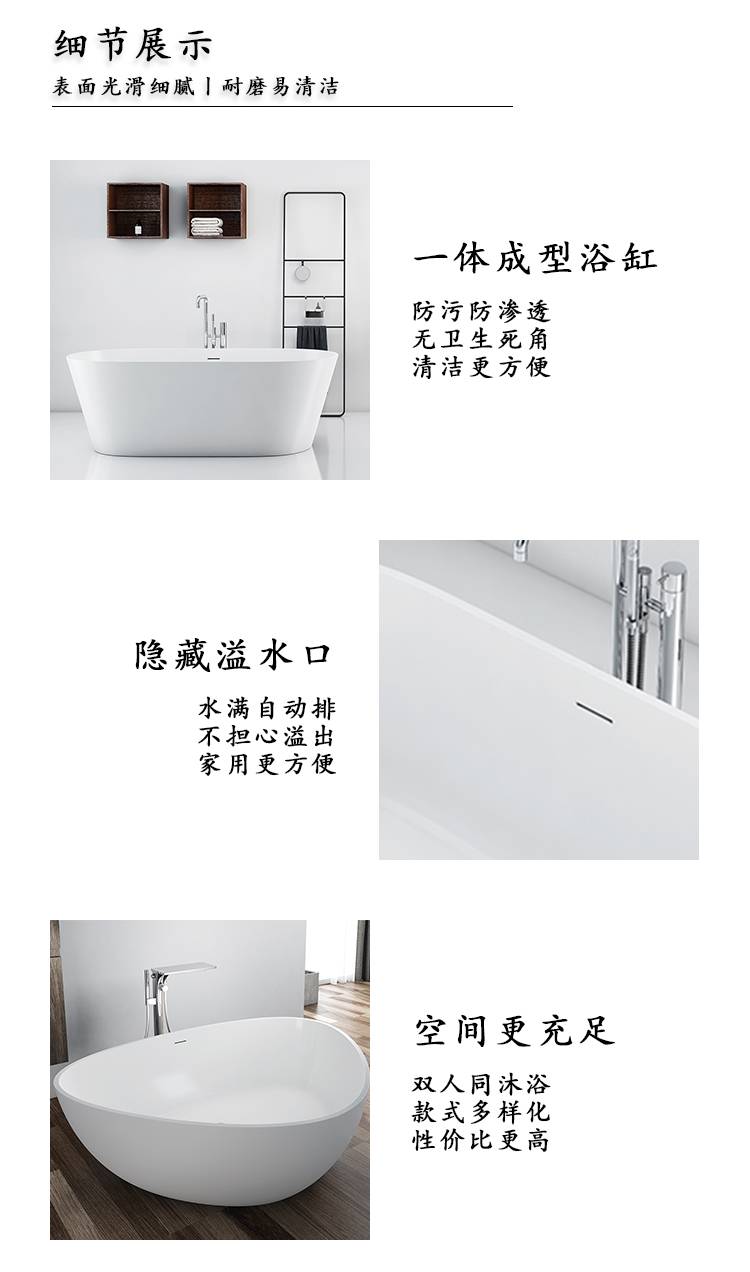 人造石网红沐浴缸 树脂透明浴缸 成人浴盆 客栈民宿卫浴