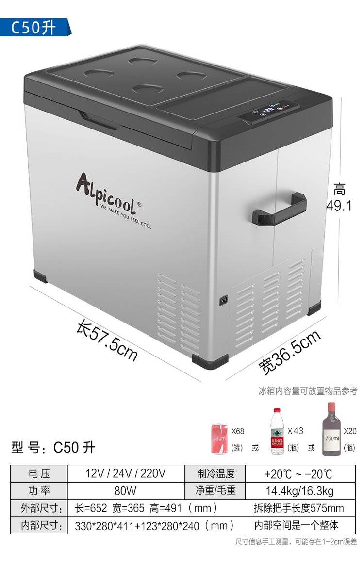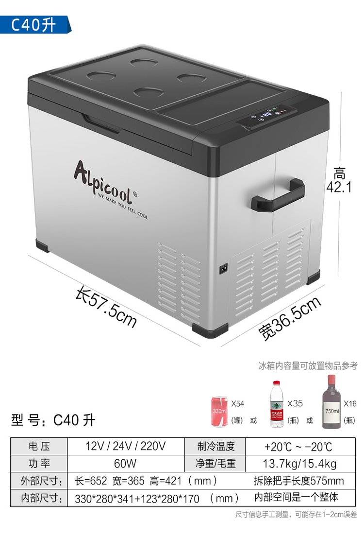 Alpicool冰虎车载冰箱冷冻冷藏双温双控12V24V110V220V露营小货车