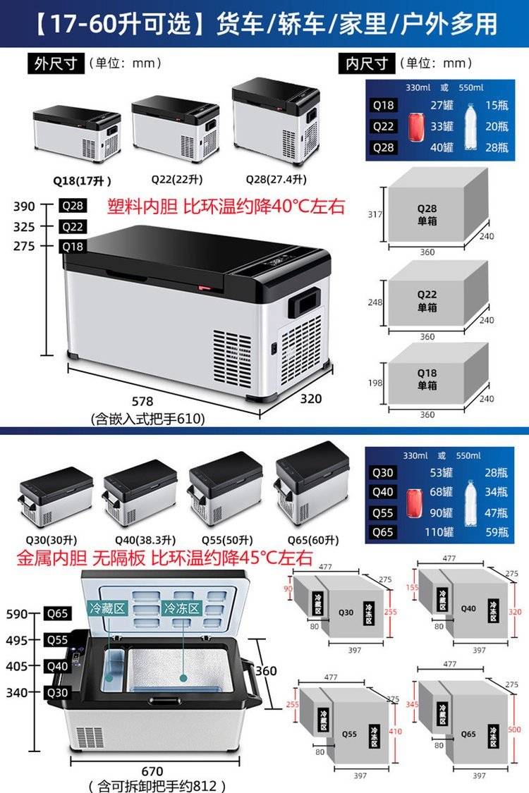 夏新车载冰箱大货车12v24v220v通用小压缩机制冷小型
