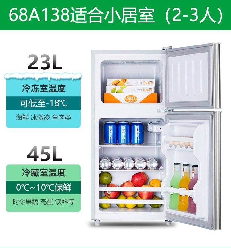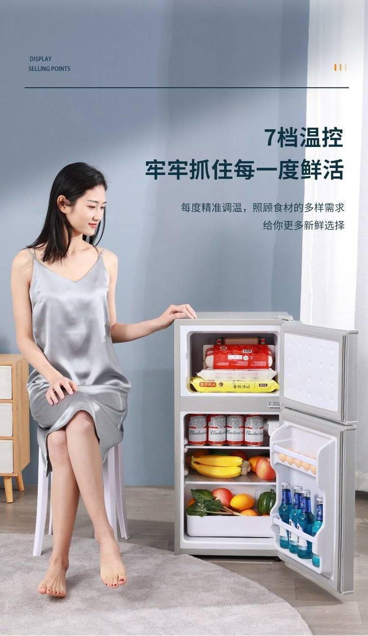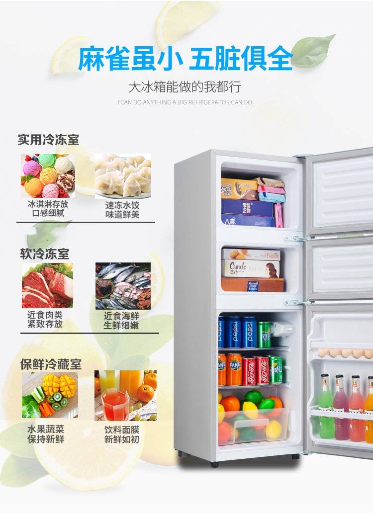 迷你双门车载冰箱 冷藏冷冻双温区 节能静音 精巧便携