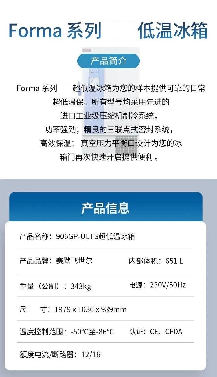 Thermo 905GP-ULTS赛默飞低温冰箱- 86℃ 容积490L 科研实验室储存