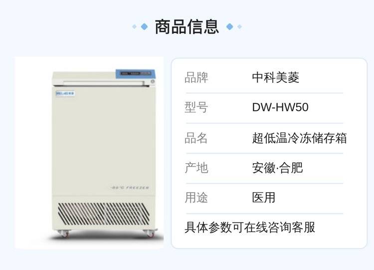 中科美菱超低温冰箱 生物冷冻储存箱DW-HW50 -86℃ 厂家直供 货到付款
