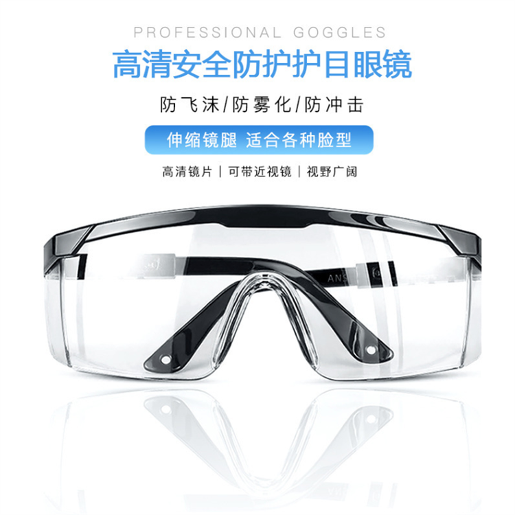 蓝架伸缩安全防护眼镜防风防尘防冲击防飞溅劳保护目镜