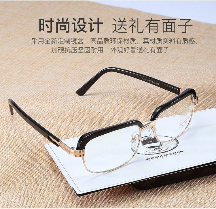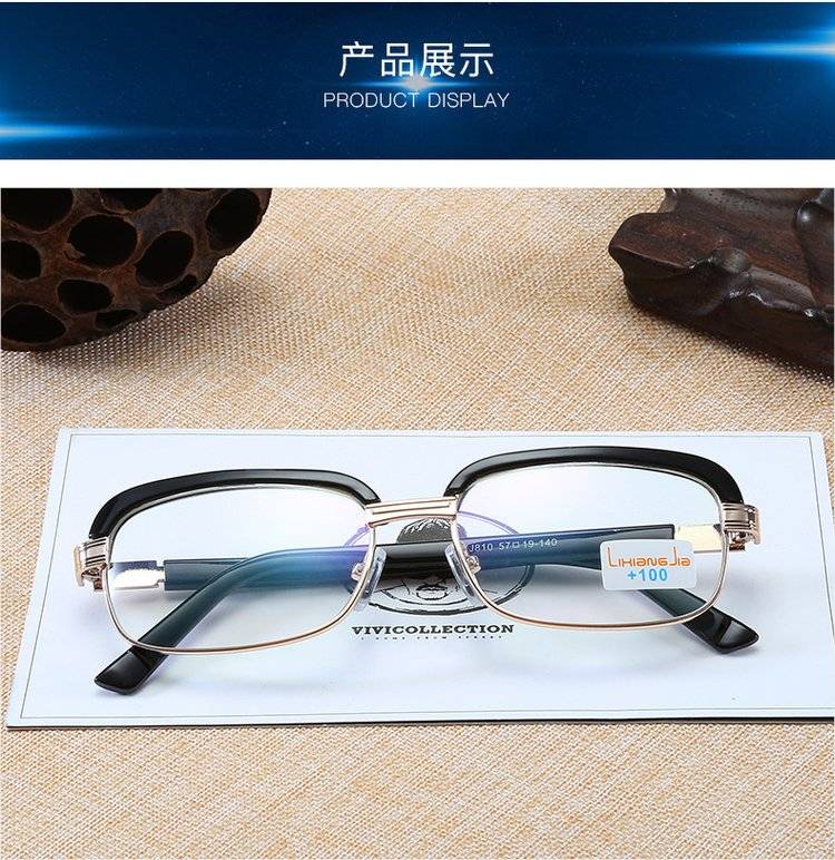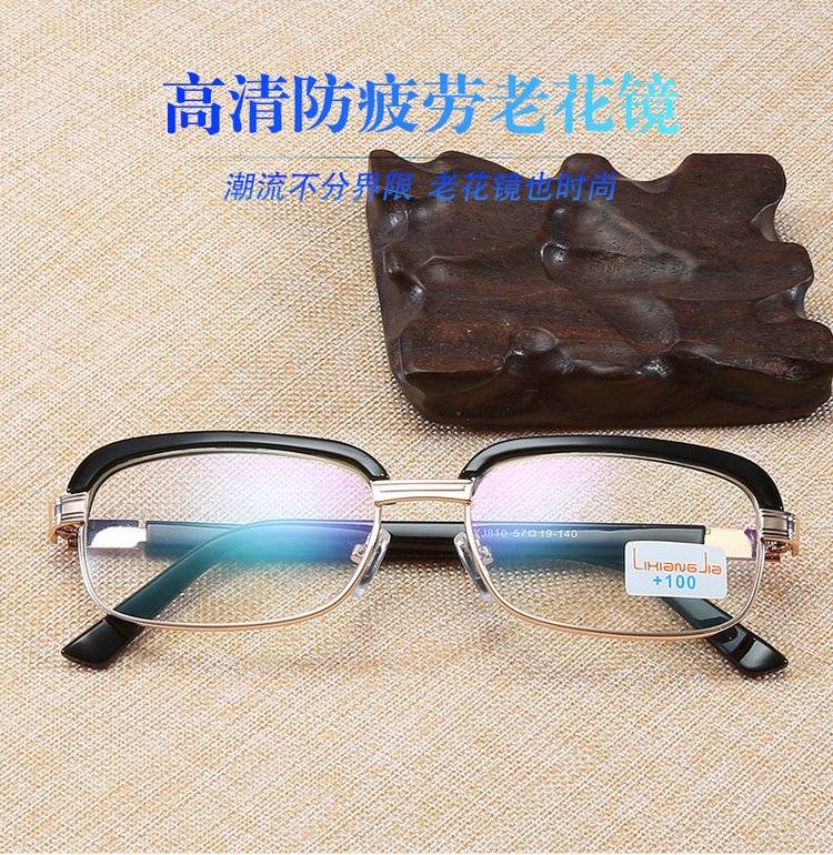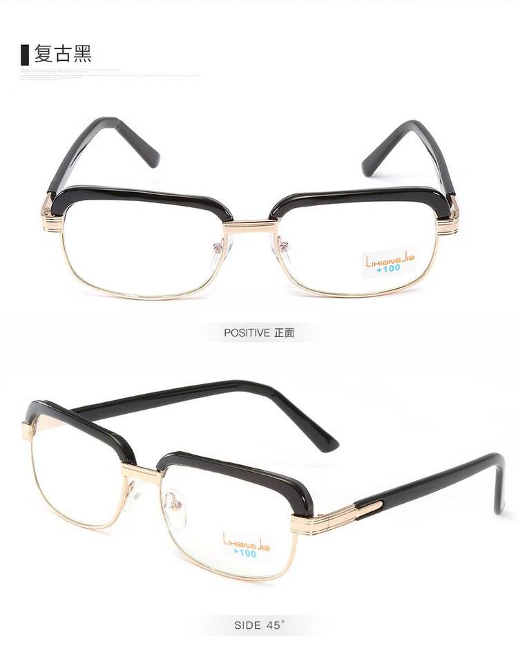 芙乐鑫黑色金属架复古老花镜男式100-400度眼镜