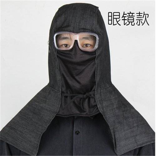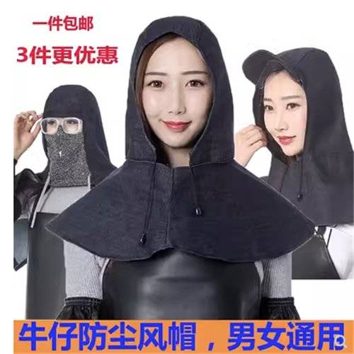 帆布牛仔布披肩帽 防尘风帽带眼镜 套头头套工地水泥
