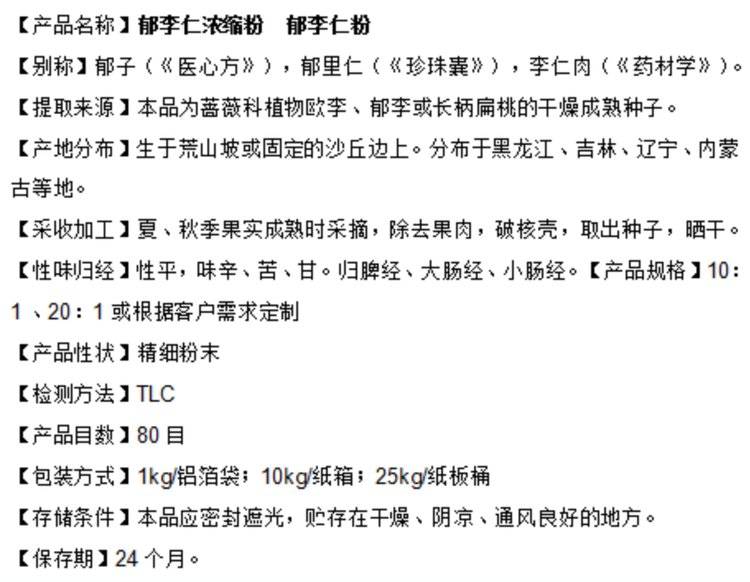 郁李仁浓缩粉 多倍浓缩提取 水溶性好 六盘韵生物