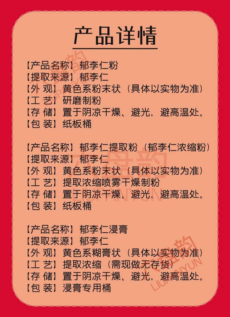 六盘韵 郁李仁粉/提取物/浓缩粉/浸膏 郁子 功能性的产品研究可用