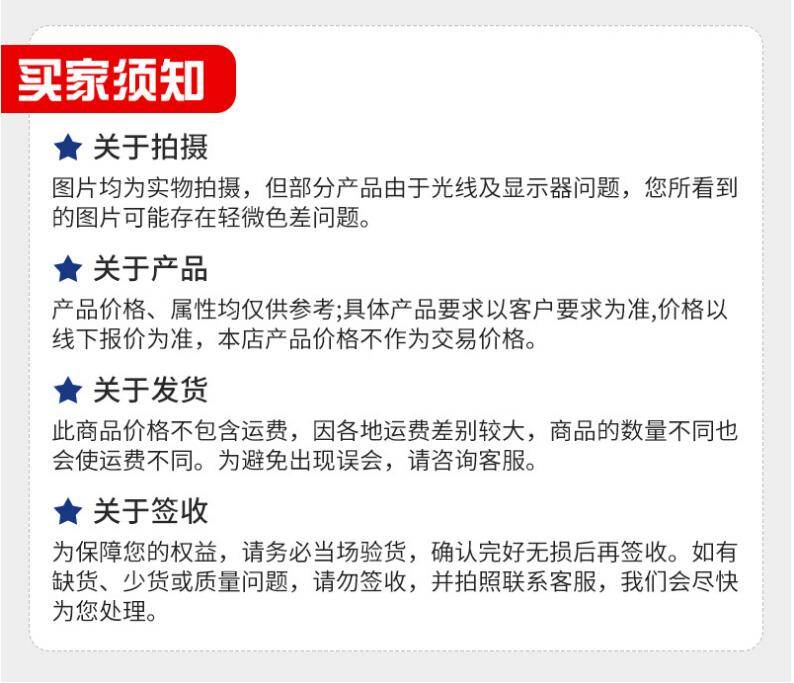 特别提示:商品详情页中(含主图)以文字或者图片形式标注的抢购价等价格可能是在特定活动时段下的价格,商品的具体价格以订单结算页价格为准或言是您与商家联系后协商达成的实际成交价格为准;如您发现活动商品价格或活动信息有异常,建议购买前先咨询商家。