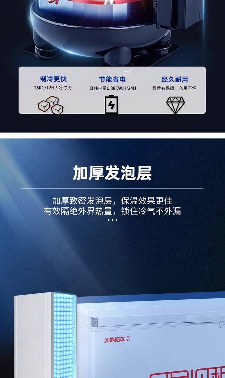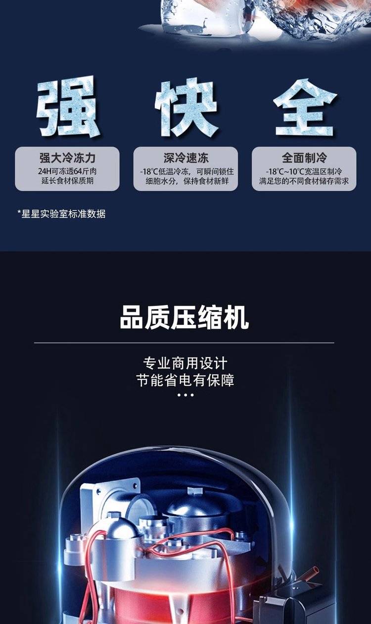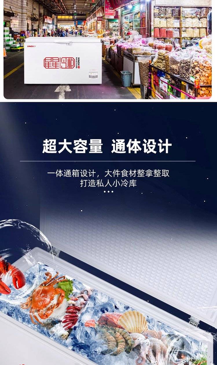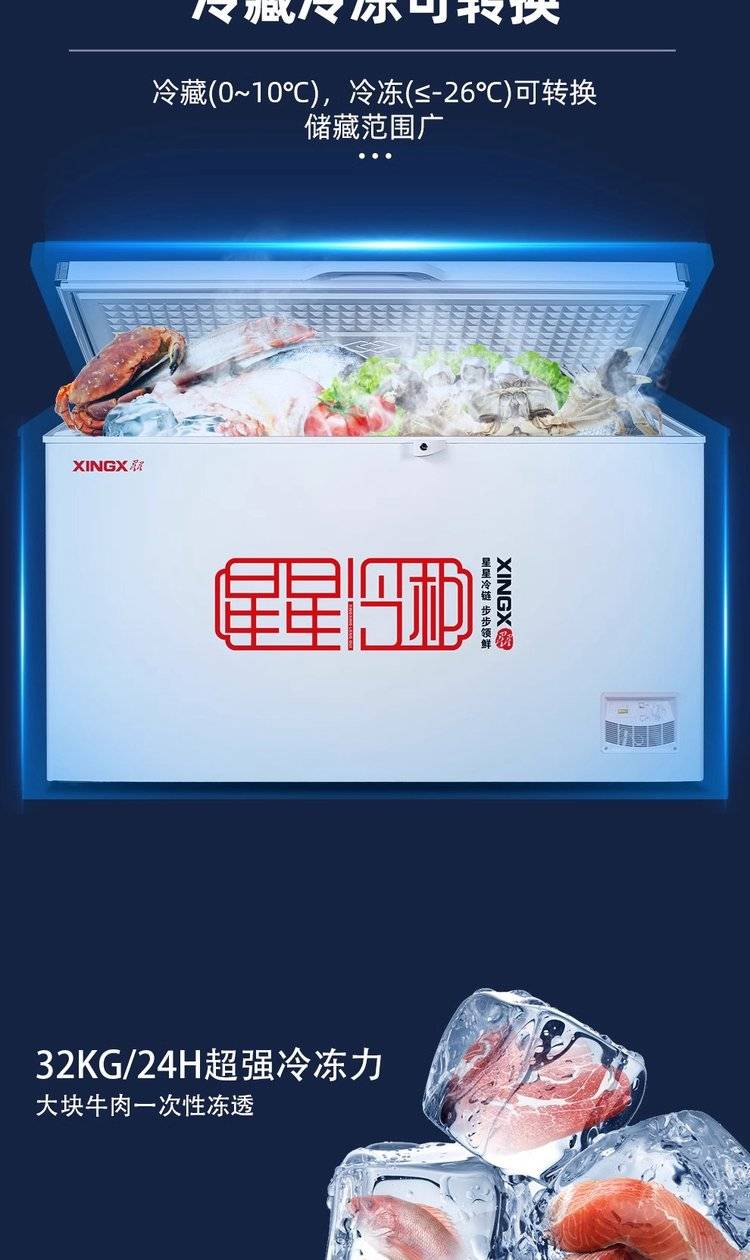星星家用冷柜 速冻急冻单温大冰柜 卧式冷冻柜商用冰箱