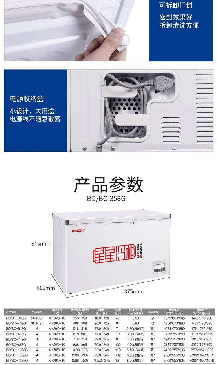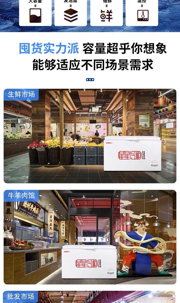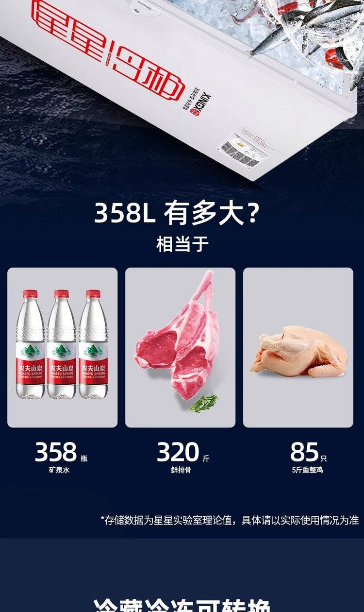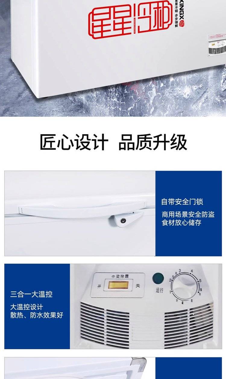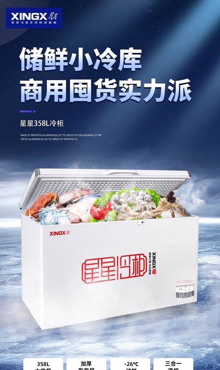 星星家用冷柜 速冻急冻单温大冰柜 卧式冷冻柜商用冰箱