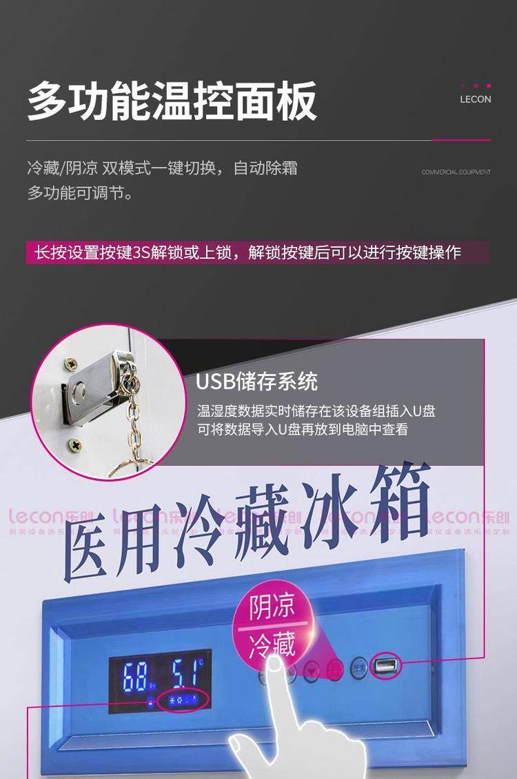 乐创药品阴凉柜医用冷藏柜风冷无霜实验室冷柜电脑控温超温报警