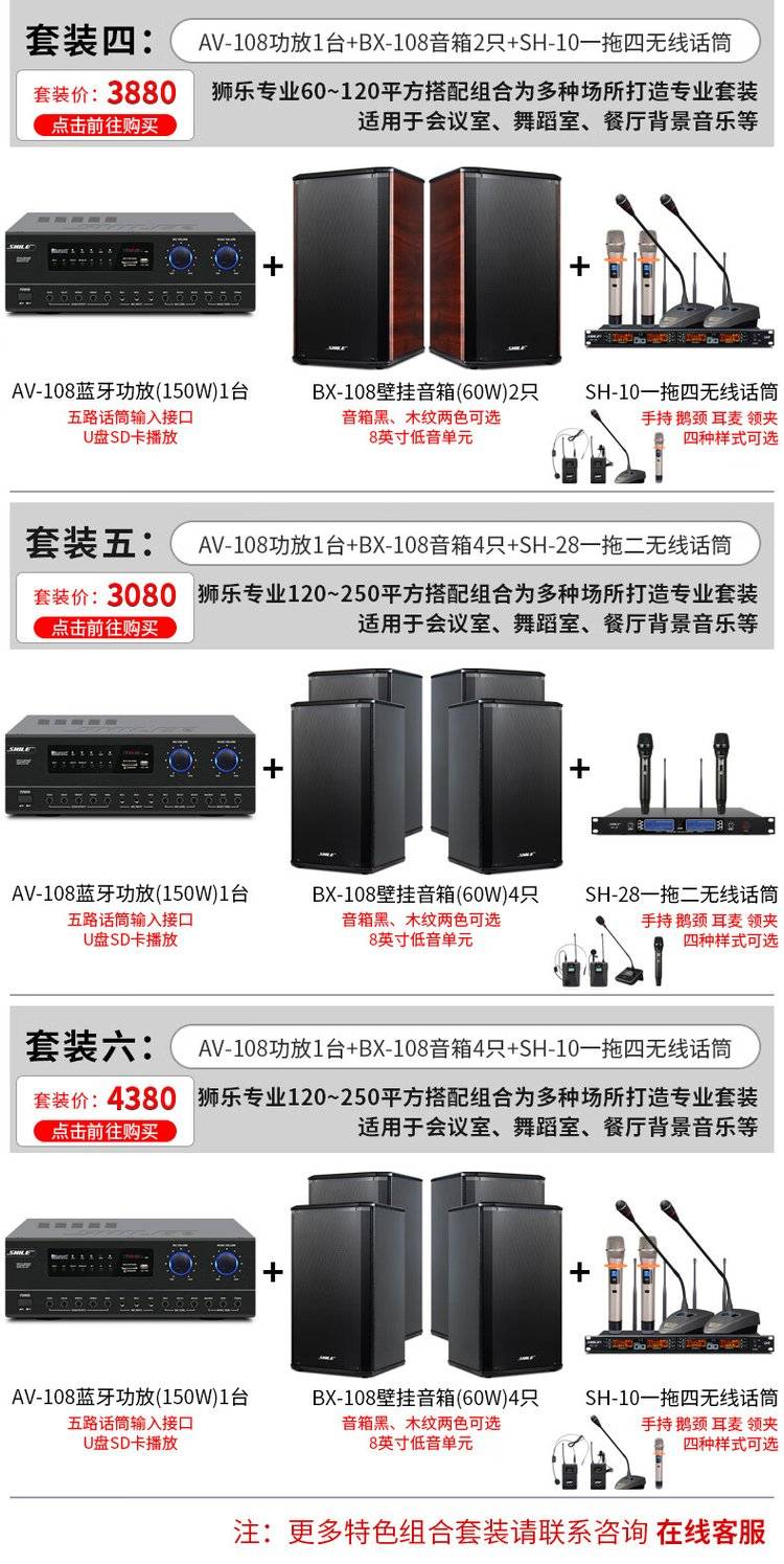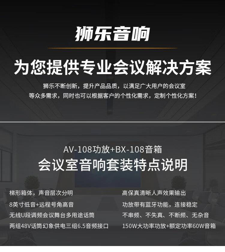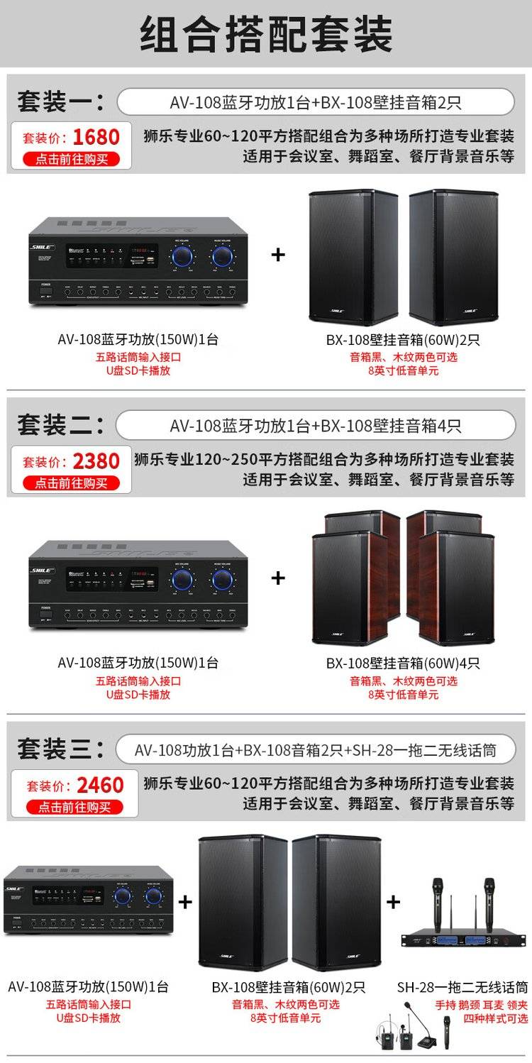 狮乐AV108+BX108*2+SH28会议音响组合套装定阻功放壁挂音响