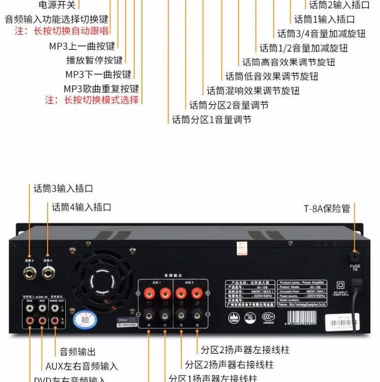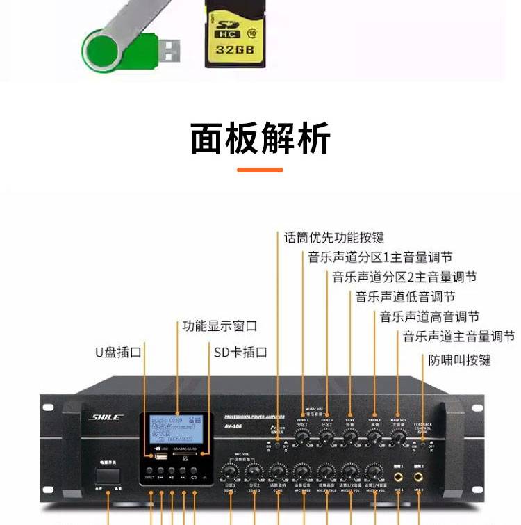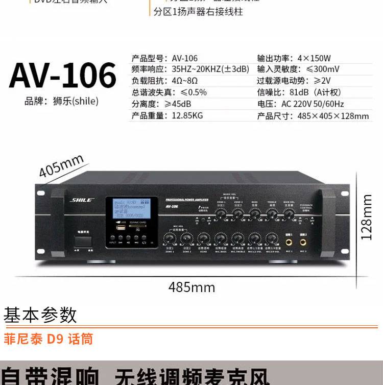 狮乐会议室音响套装AV-106四通道合并蓝牙功放BX-108 109 503 BG-8