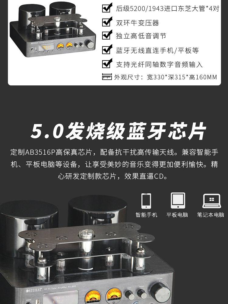 AV889 蓝牙USB发烧hifi胆机大功率真空管电子管复古功放
