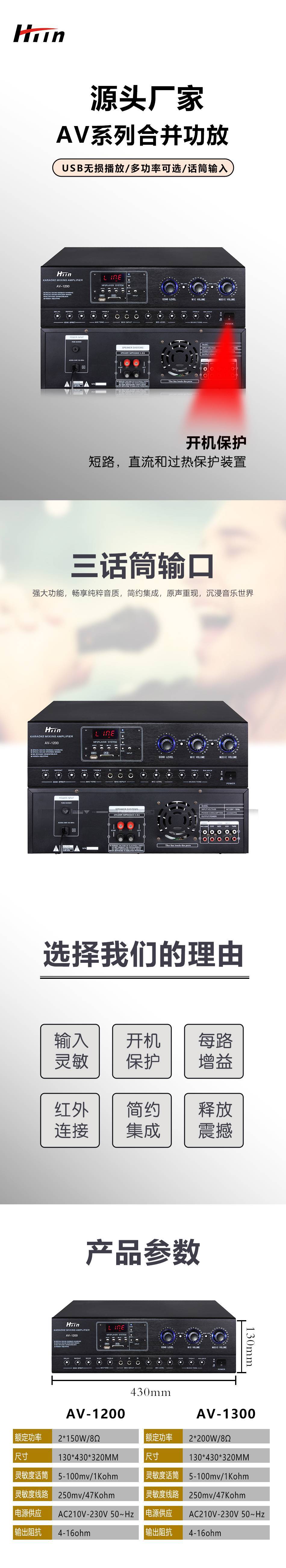 HTin/海豚音功率放大器合并功放源头厂家AV-1200 AV-1300