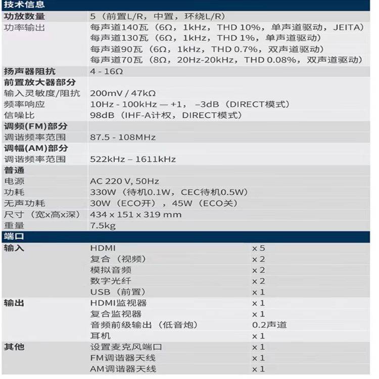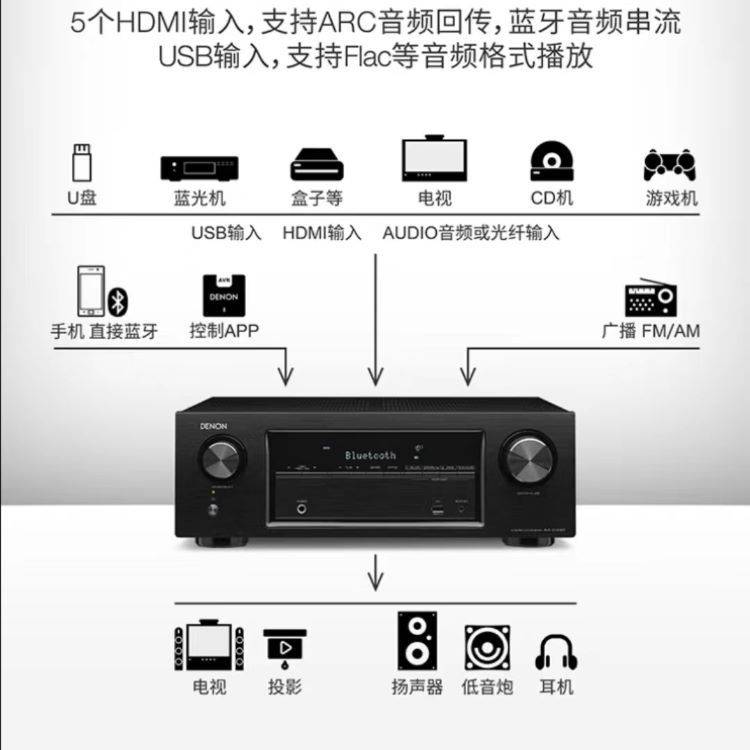 DENON天龙AVR-540BT家庭影院5.2声道AV功放支持蓝牙USB功能