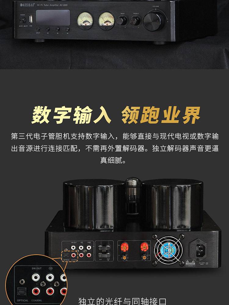 AV889 蓝牙USB发烧hifi胆机大功率真空管电子管复古功放