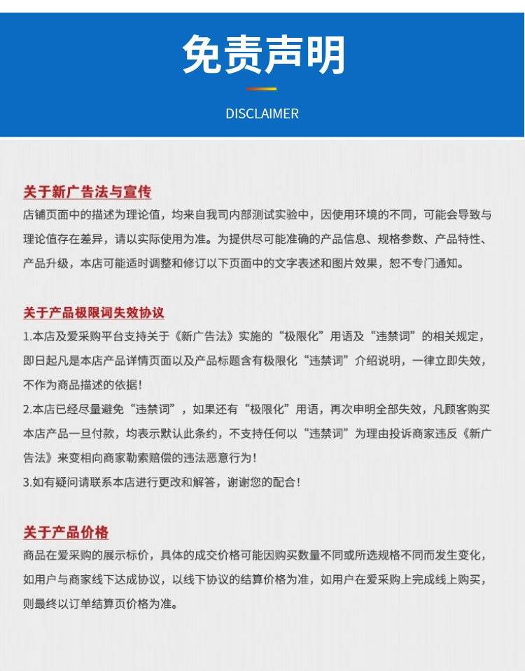 特别提示:商品详情页中(含主图)以文字或者图片形式标注的抢购价等价格可能是在特定活动时段下的价格,商品的具体价格以订单结算页价格为准或言是您与商家联系后协商达成的实际成交价格为准;如您发现活动商品价格或活动信息有异常,建议购买前先咨询商家。