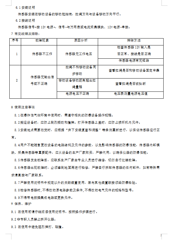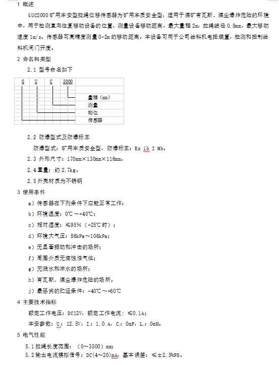 测量物体移动距离GUC2000矿用本安型拉绳位移传感器