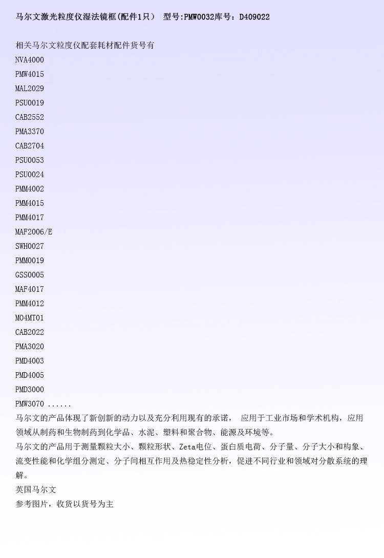 马尔文激光粒度仪湿法镜框(配件1只) 型号:PMW0032库号:D409022