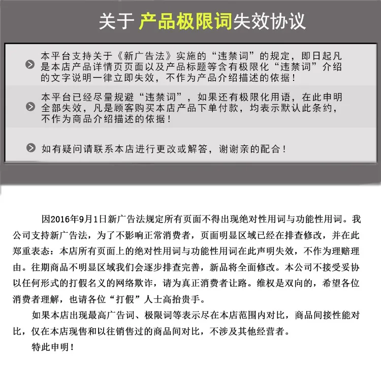 特别提示:商品详情页中(含主图)以文字或者图片形式标注的抢购价等价格可能是在特定活动时段下的价格,商品的具体价格以订单结算页价格为准或言是您与商家联系后协商达成的实际成交价格为准;如您发现活动商品价格或活动信息有异常,建议购买前先咨询商家。