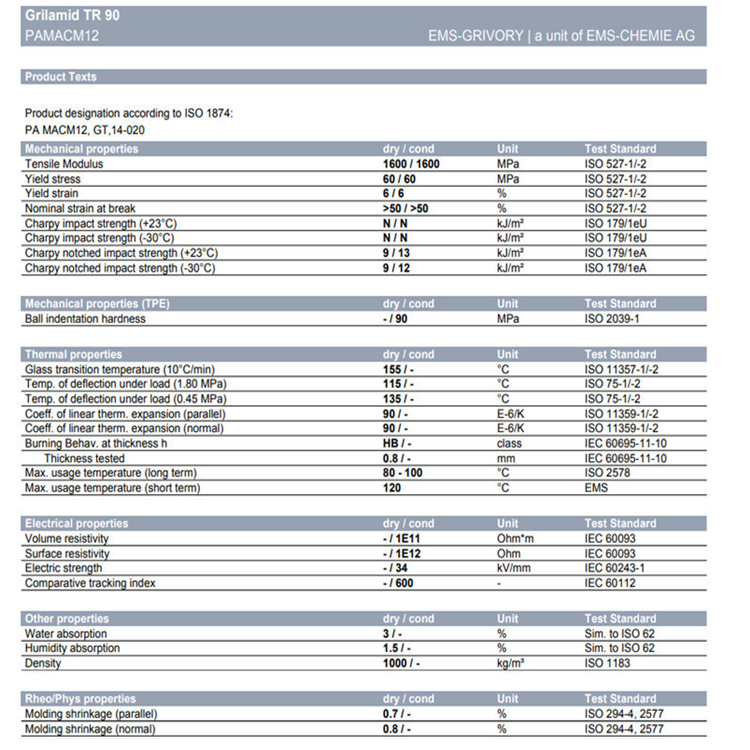 pa12 瑞士EMS TR90UV 抗UV透明尼龙 眼镜架工业配件工具 汽车行业