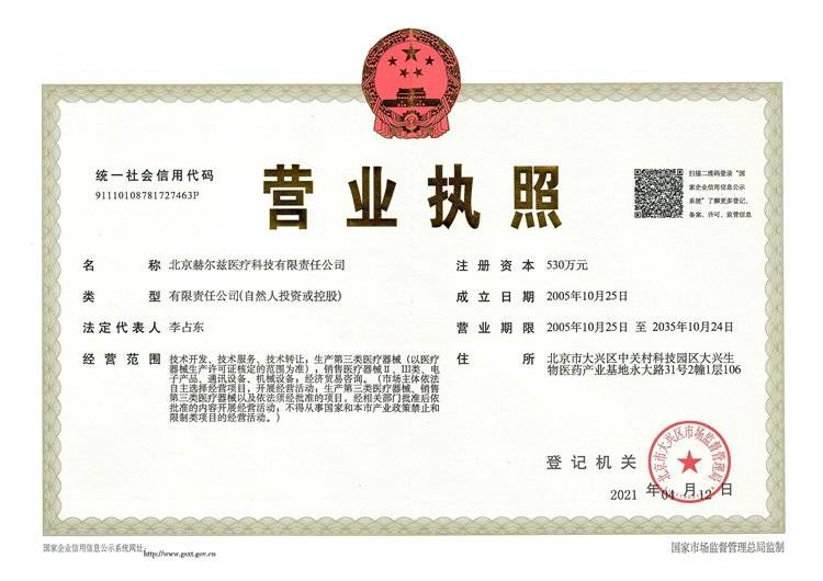 北京赫尔兹医疗科技有限责任公司