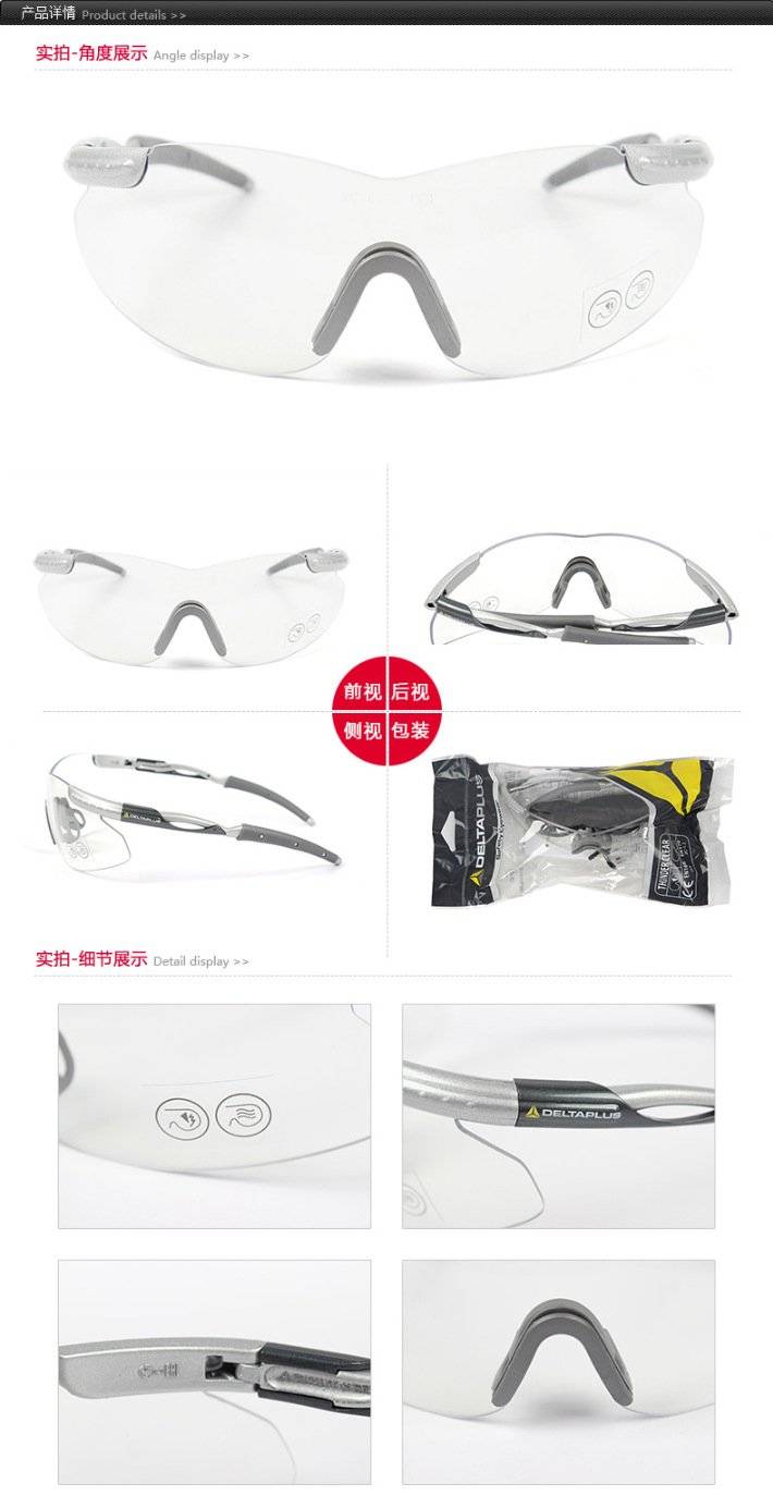 代尔塔眼镜 101109 防尘骑行运动透明防雾防冲击防刮擦防护眼镜