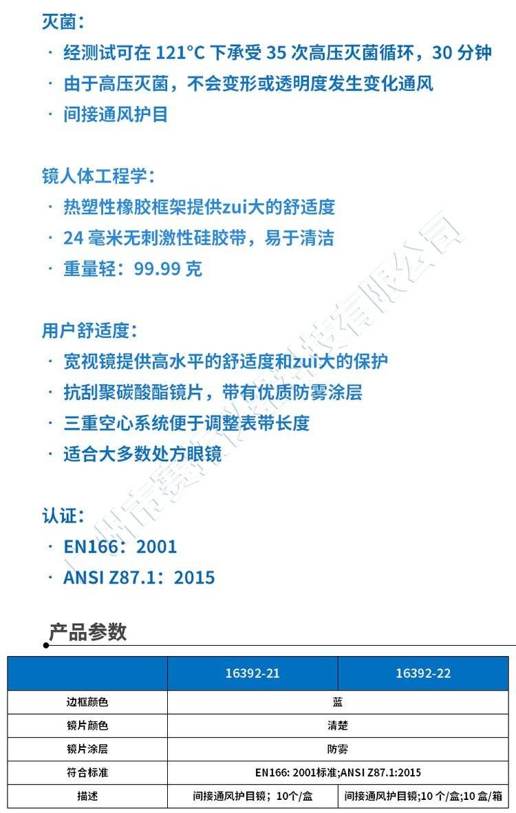 Cole-Parmer安全护目镜防护眼镜可高温高压灭菌,宽视镜16392-21