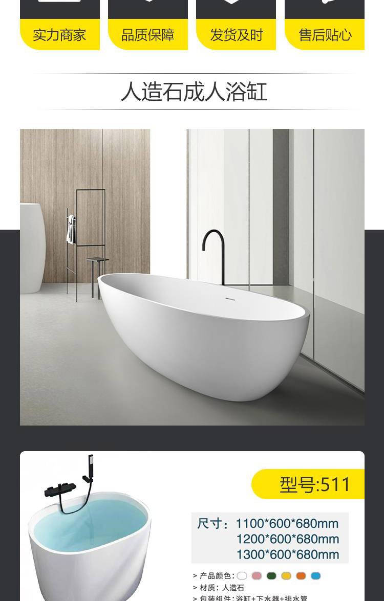 酒店情侣双人人造石一体浴缸别墅大平层用独立式浴盆
